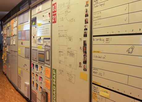 Was zuerst auffällt sind die Räume. Der Zusammenhang zwischen Raumkonzept und agilem Arbeiten sticht sofort ins Auge: flexible Teambereiche, große und allen zugängliche Tafeln für die Entwicklungsfortschritte der Arbeit, Lounges, Rückzugsmöglichkeiten für Besprechungen, eine Bibliothek und eine eigene Kantine.